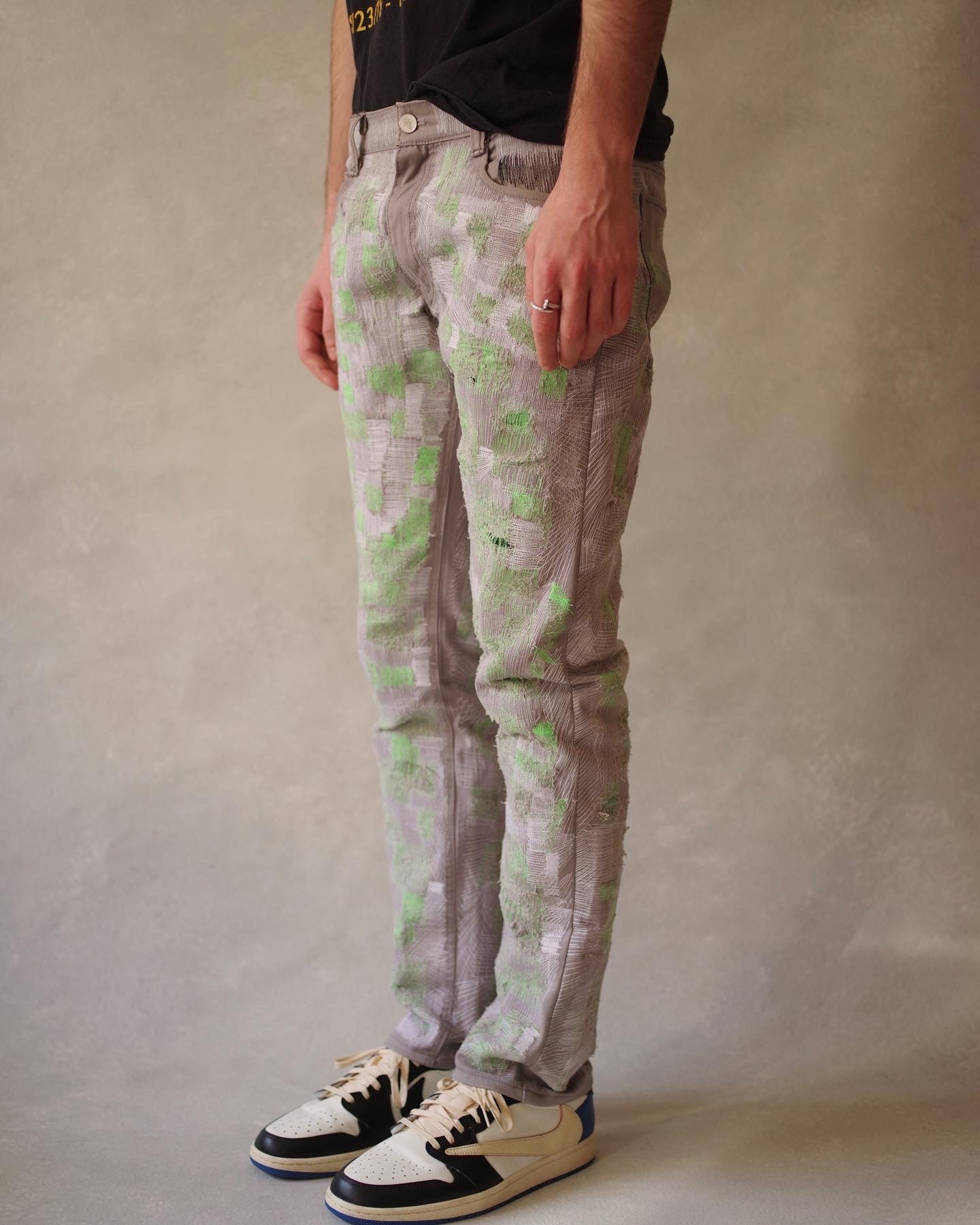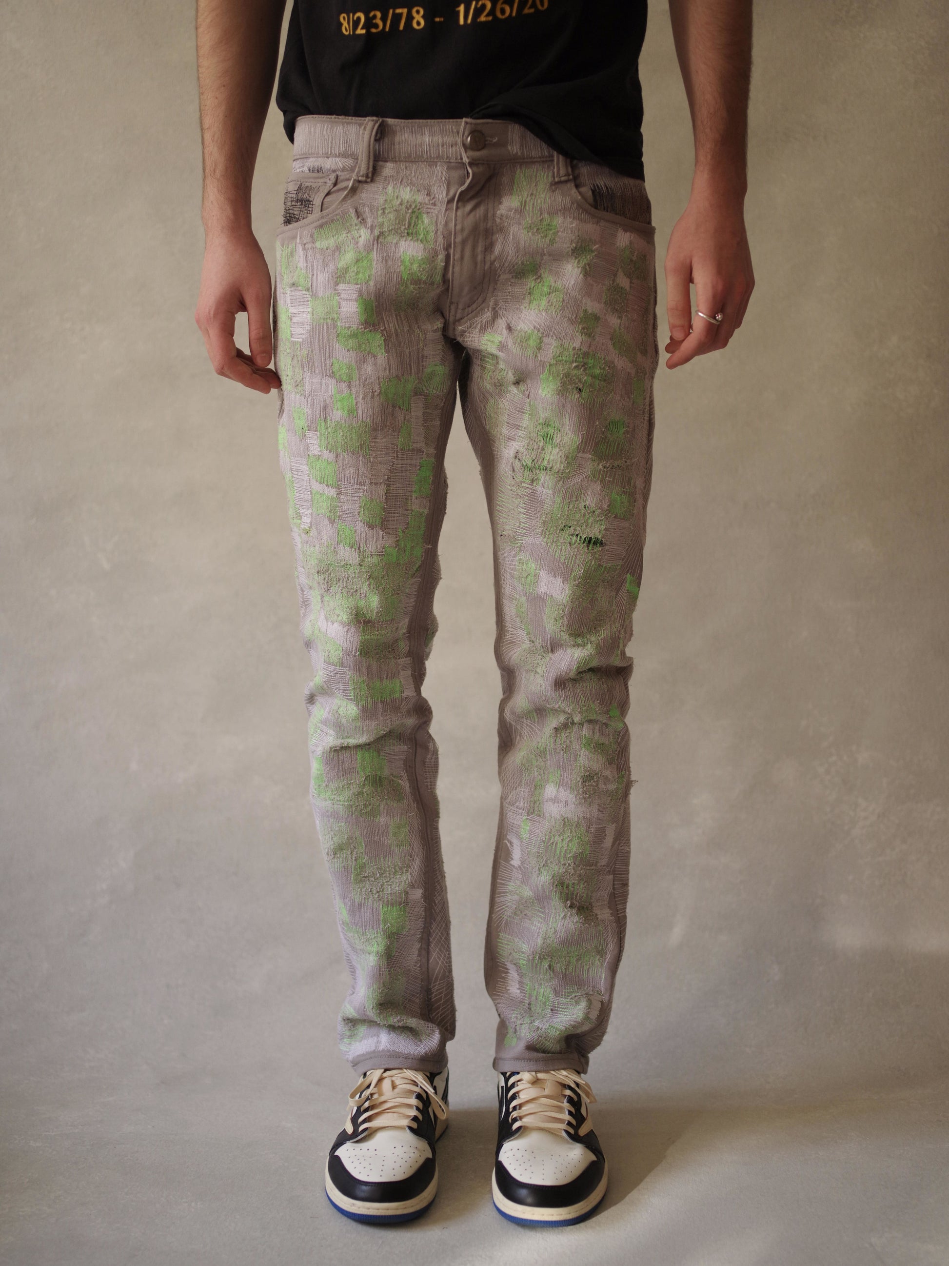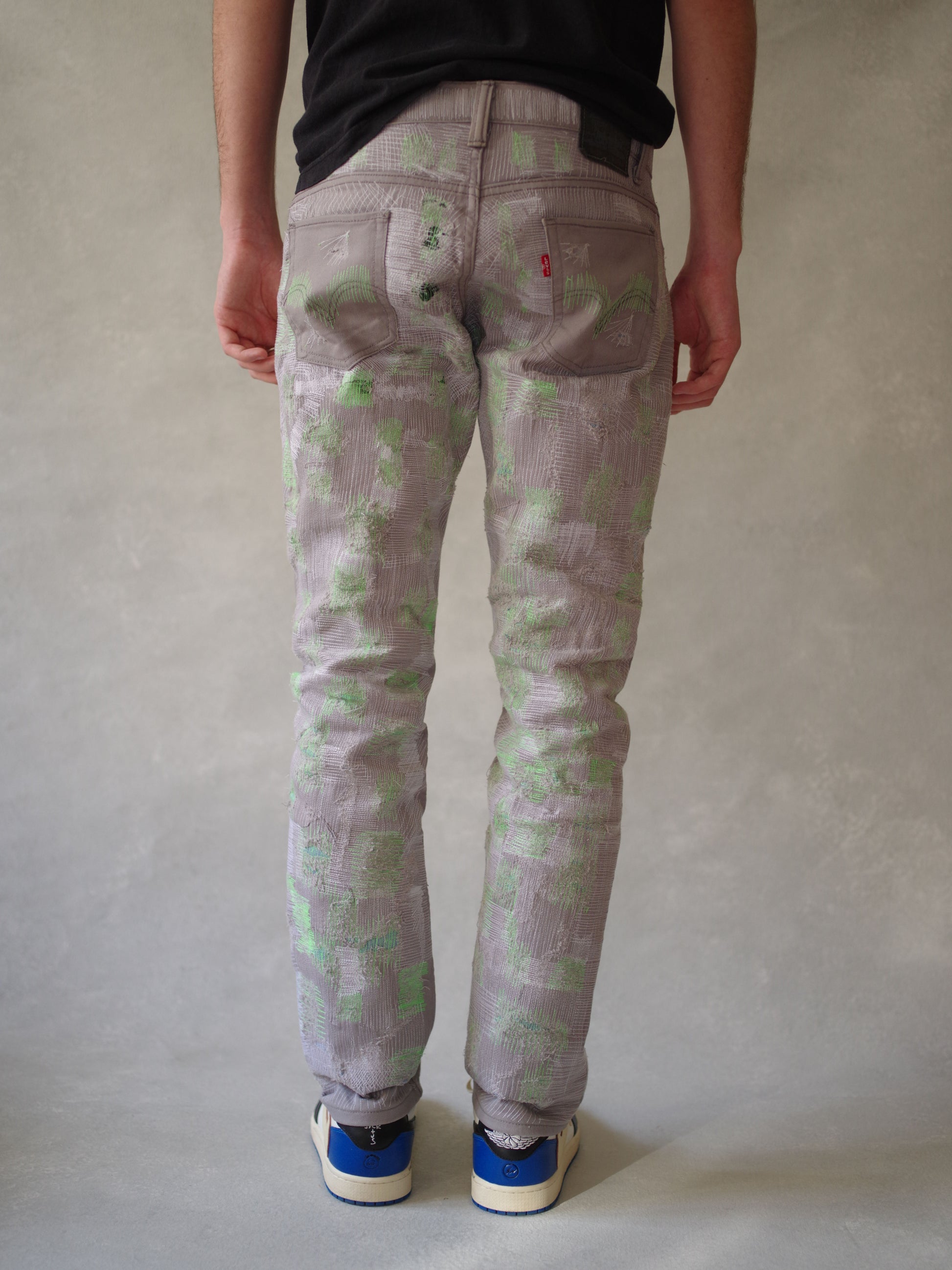 Hand-cut from vintage Levi's denim that's distressed, and repaired over hours of craftsmanship.